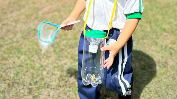 虫かごと網を手に、あちこちで生き物探しが始まります。