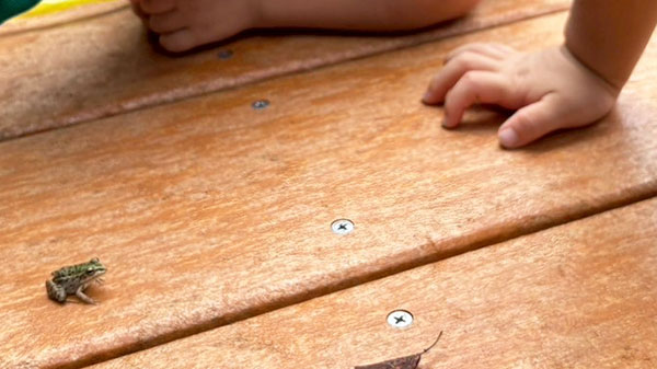 「なんか飛んでた!」「カエルみつけた!」「あ、カマキリや!!」